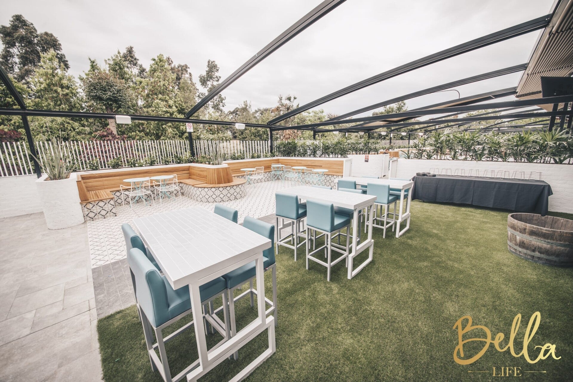The best way to describe the Rose Garden spaces is that the Hamptons and Greece meet Bella Vista Hotel. With a retractable, weatherproof roofing system that can be utilise for all weather conditions, this is Bella Vista Hotels fan favourite event space. With an Island Bar based in the middle of the space which allows for easy access for you and your guests, is a crowd pleaser for all. Utilised within the large, outdoor space is the use of in-built garden booths to provide additional seating room and space for the comfort of your guests. Within a banquet style, this space can hold up to 60 guests within a banquet style event, and up to 100 guests within a cocktail style. The benefit of this beautiful space is that Rose Garden 2 can become a combined, luxurious open space for larger event bookings. With banquet seating now allowing up to 120 guests seated, and 250 guests within a cocktail style.