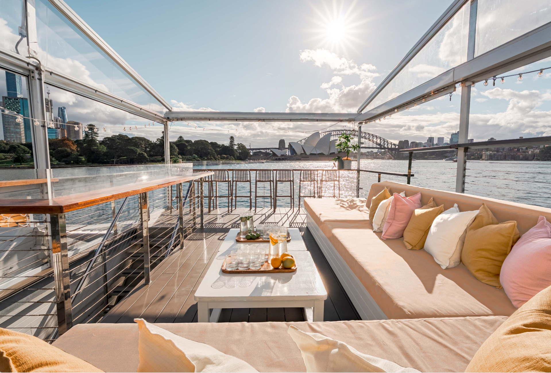 Exclusive reserved rooftop space with prime views over Sydney Harbour, including the Opera House and Harbour Bridge.
